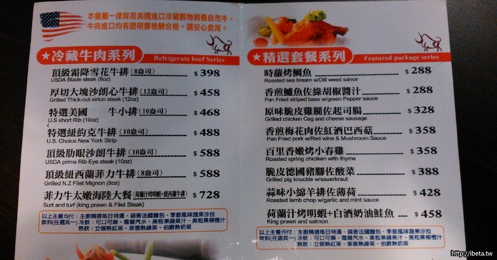 牛太嫩 發表於 2014-7-31 23:14 菜單 以上都是套餐價格 套餐均有附「濃湯、麵包、沙拉、飲料」