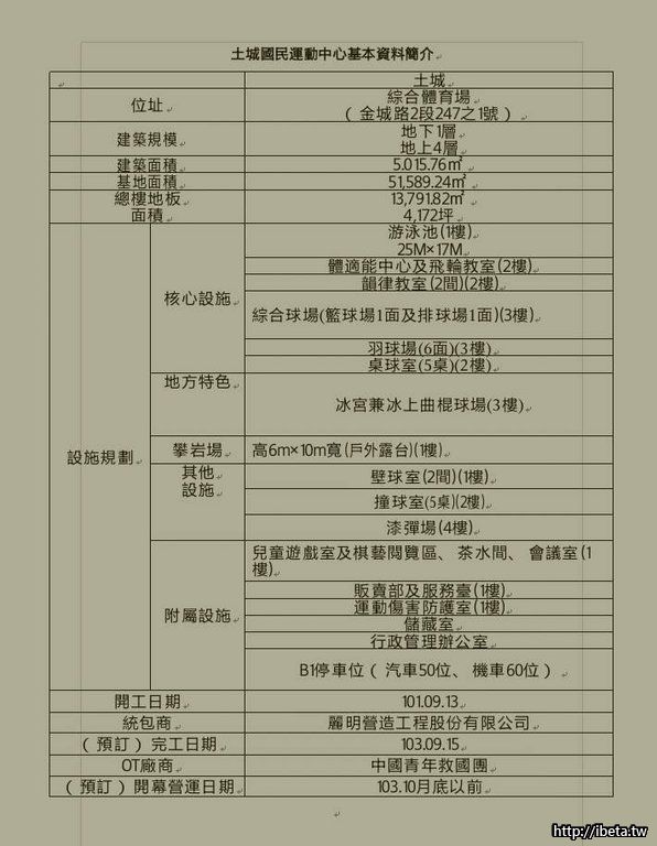 土城國民運動中心預定在103.09.15完工,預定10月底前開幕營運囉~~土樹三鶯所有鄉親好朋友,又有一個運動的好去處了!地址:土城區金城路2段247之1號,距北大不到10公里.