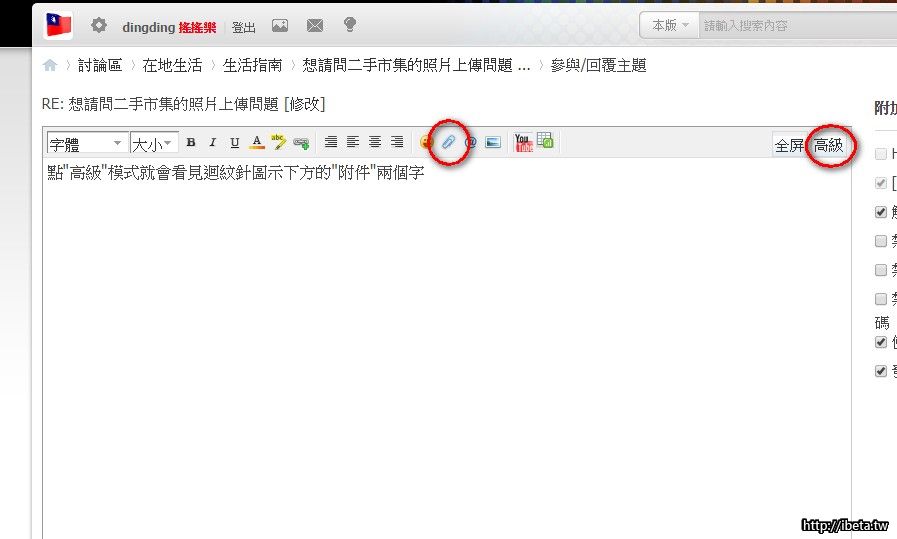 dingding 發表於 2014-8-29 01:06 點"高級"模式就會看見迴紋針圖示下方的"附件"兩個字