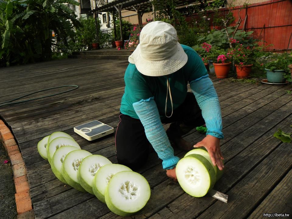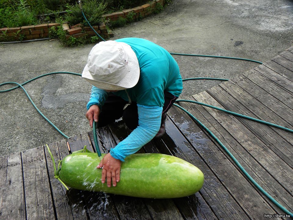 ↑園丁秀枔動手將冬瓜洗乾淨。