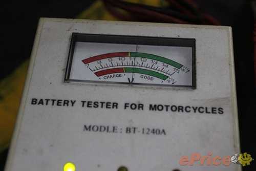 ▲由電池名牌 YUASA ( 湯淺 ) 出品的機車用電池測試器擔任這次測試新型環保電池狀態的重任。