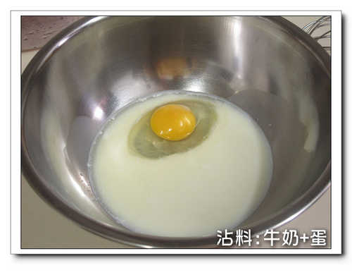 1.雞蛋+牛奶拌勻