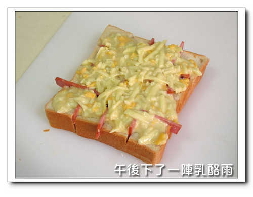 女兒喜歡+火腿+最上層打一顆蛋...一起進烤箱