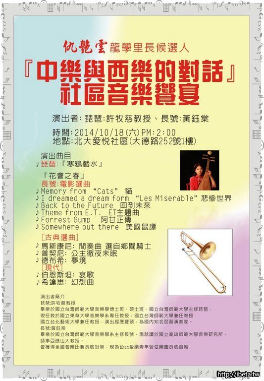 10月18日許牧慈音樂會歡迎大家都能來捧場,不限龍學里里民.