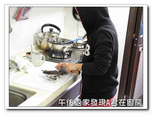 今天買個菜回來...發現A君正佔領我的廚房..