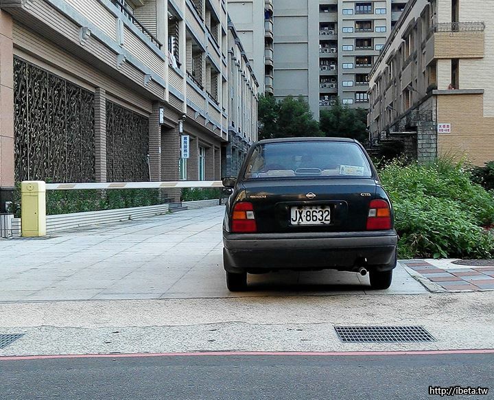 學成路倍適得電器行旁邊的人行道也常有一部裕隆停上去。