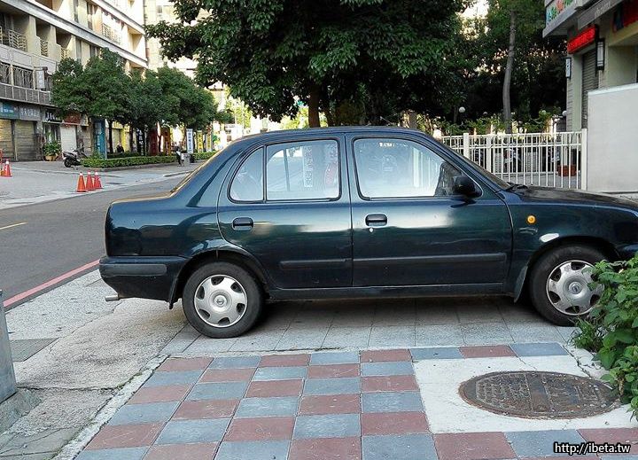 真的好誇張~ 機車停上人行道就不好了,現在連汽車都爬上來。