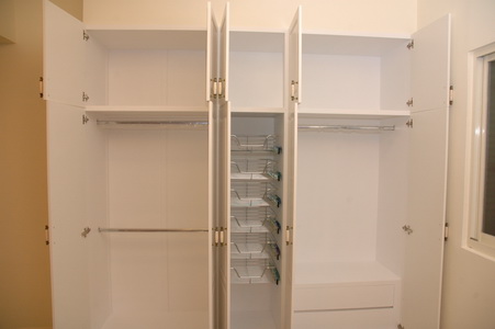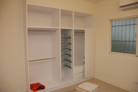 將舊的15年衣櫃改裝烤白安裝系統櫃用的新古典成型門片