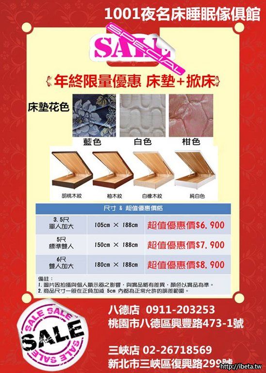 6尺 雙人加大 ( 180 × 188公分 ) $8900