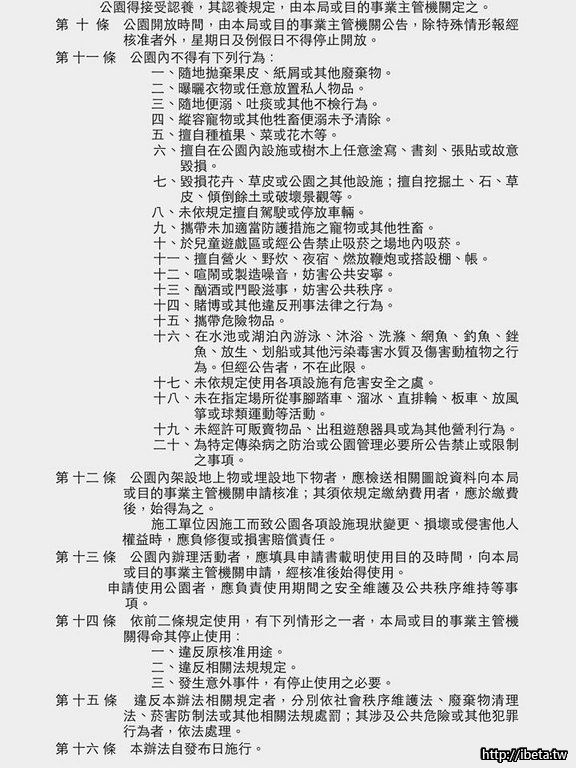 使用公園涉及營利行為,公園管理辦法第11條第19項、第14條有明文規定,內容可供參考。