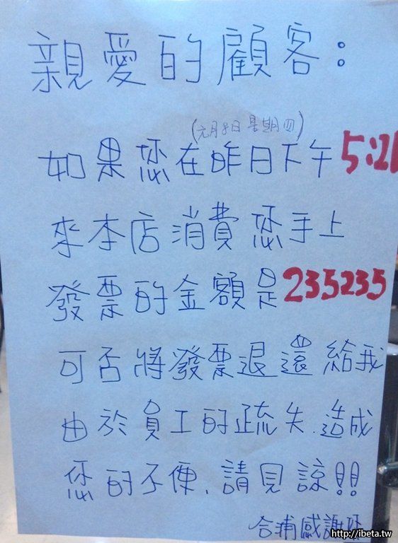 如果有人剛好這時間去合浦買晚餐的,幫忙看一下你手上的發票,是否金額不符,否則營業稅可要繳不少。