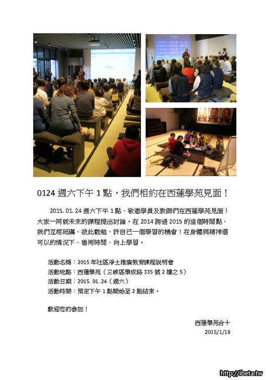 0124週六下午1點,我們相約在西蓮學苑見面!