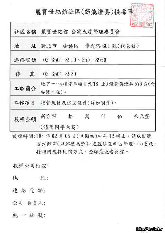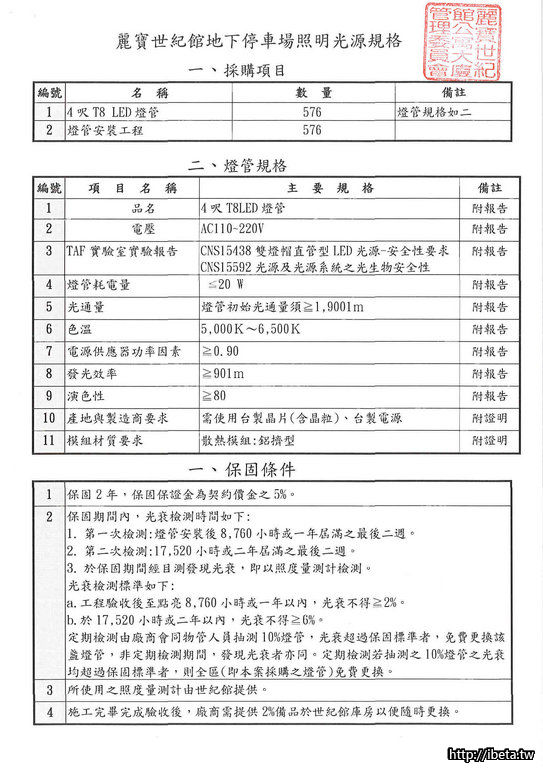 麗寶世紀館 地下停車場節能燈具招標公告