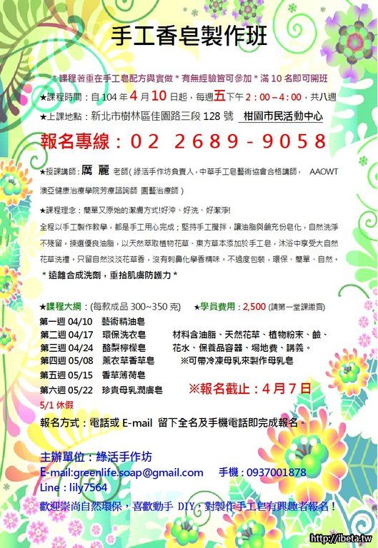 greenlifesoap 發表於 2015-2-14 08:27 液皂班劉小姐+1 0937XXXX80