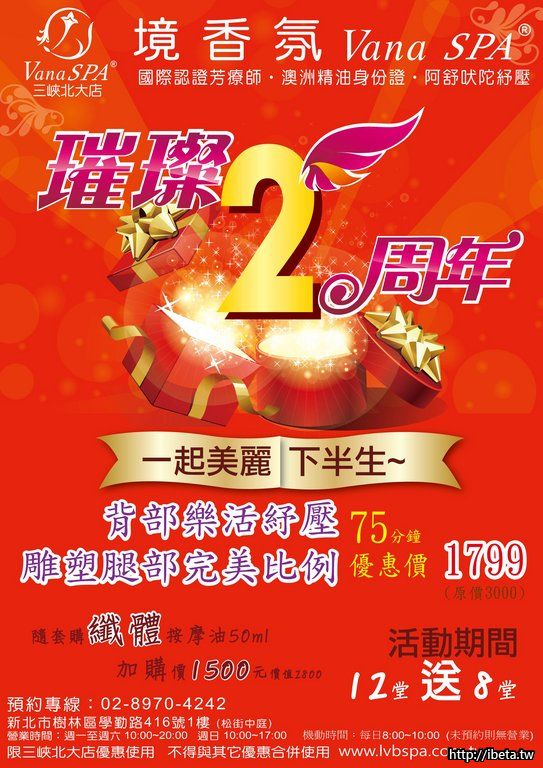 [backcolor=yellow]境香氛SPA三峽北大店 璀璨2周年[/backcolor]
