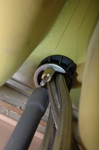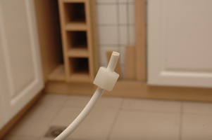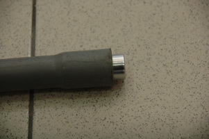 如圖將套桶放入4分塑膠管喇叭口後塞緊即成為好用的自制工具(常用者可以請人焊接在不鏽鋼管上)
