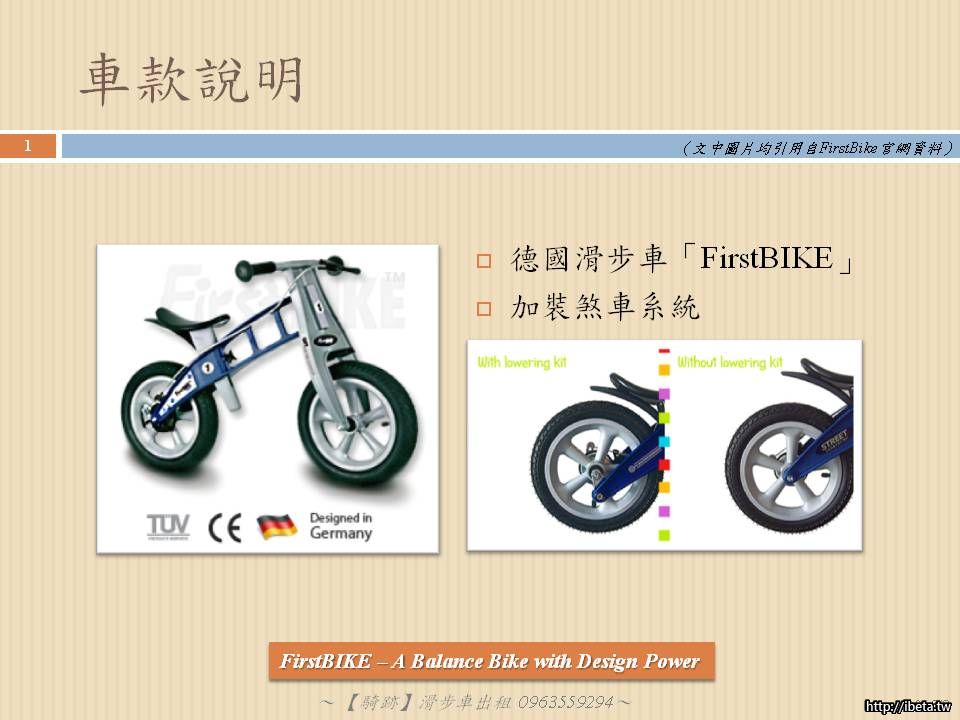 以下說明資料轉自德國得獎「FirstBIKE」滑步車官網: