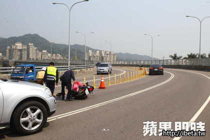 而陳姓賓士車駕駛(49歲)直向警方喊冤:「他突然就從對向衝過來啦!」他表示,上午他準備開車去上班,才剛上橋就發現對向的機車騎士有些搖晃,沒想到他直接穿過防撞軟管,迎面而來,想閃都閃不掉!