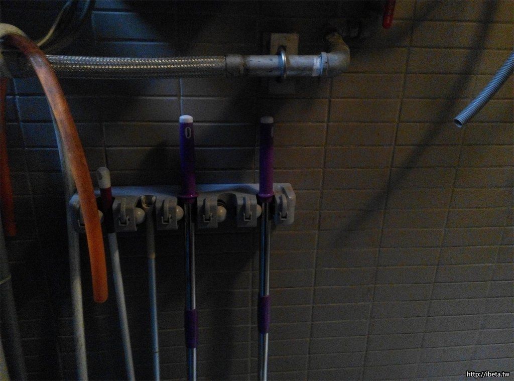 因為佔用了原本放置拖把的位置,使用 金鋼固力膠 把座子固定在濾水器的架子上! 搞定! 完全不佔空間了!