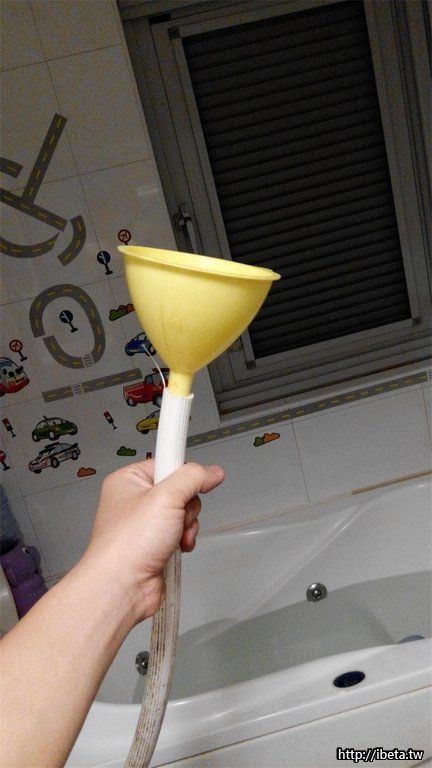 在完成後端水路之後,最後再關閉主水路,進行切管! 此時可以先鋸開一小孔使用 漏斗 + 水管 把水先接下來,避免搞的水四處都是!