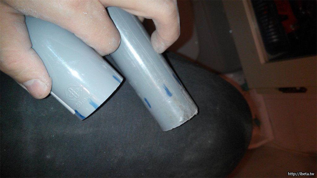 若是連接水管有特定的角度,因為上了膠,插入之後 2 ~ 3 秒後,你就根本動不了了! 可以先用筆在放樣時,先行劃好記號! 然後偏一些插入旋轉(旋轉是為了使膠更平均)對準記號! 這樣就不會差很多了!