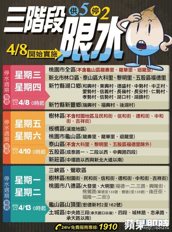 停水週期 (每週)星期一、星期二(4月13日0時起)
