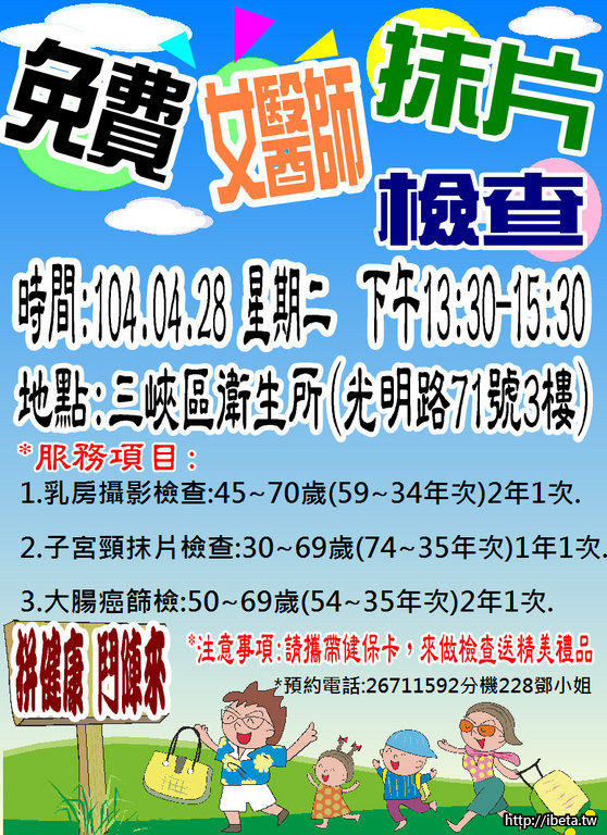 4月28日三峽衛生所女醫師子宮頸抹片檢查