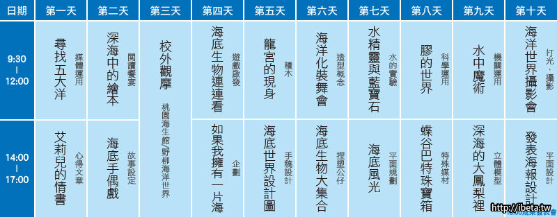 - 海底新世界:7/20(一)~7/31(五) 或 8/17(一)~8/28(五) 每日 9:30~17:00