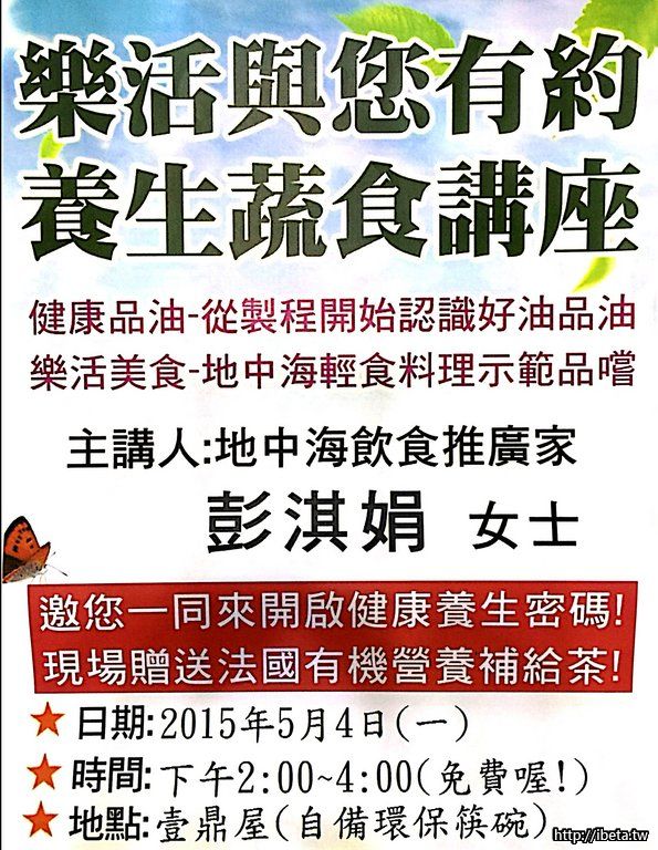 [*]講座內容:健康油品-從製程開始認識好油品油/樂活美食-地中海輕食料理示範品嚐