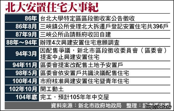 〔記者張安蕎/新北報導〕為開闢三峽北大特區,台北縣府時代辦理區段徵收,讓不少人流離失所,為補償拆遷戶而興建的北大安置住宅,將於今年底完工,但全案推動至今約廿年,有的原住戶等不到完工便去世,也有人放棄資格,共遺留下二十六間空屋,市府將朝社會住宅方向辦理,落實居住正義。