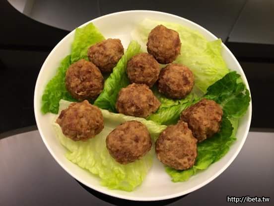 我的獅子頭是屬於台南眷村口味的所以約是貢丸大小,主原料是豬前腿瘦肉,純粹手工工打,不加防腐劑。