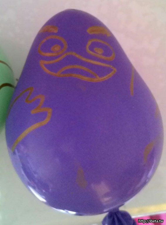 玩到晚上,氣球消風了,因為只綁了一個結[所以記得要打兩個死結會比較好]