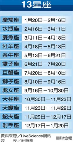 「蛇夫座」是新增的第13個星座。