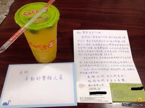 真的「揪甘心」!全台各地校園日前因北投女童割喉案重新檢討起校園安全問題,警方也全力配合加強巡邏,不過,新竹市警局臉書粉絲專頁小編昨日(11日)PO出2張照片表示,有2位清大教授在炎炎夏日送來冰涼飲料慰勞警方,「沒想到一杯飲料就讓警察著實感動了......」