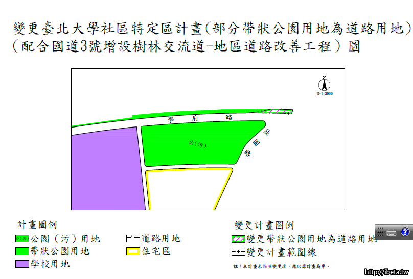 變更臺北大學社區特定區計畫(部分帶狀公園用地為道路用地)(配合國道3號增設樹林交流道-地區道路改善工程)案