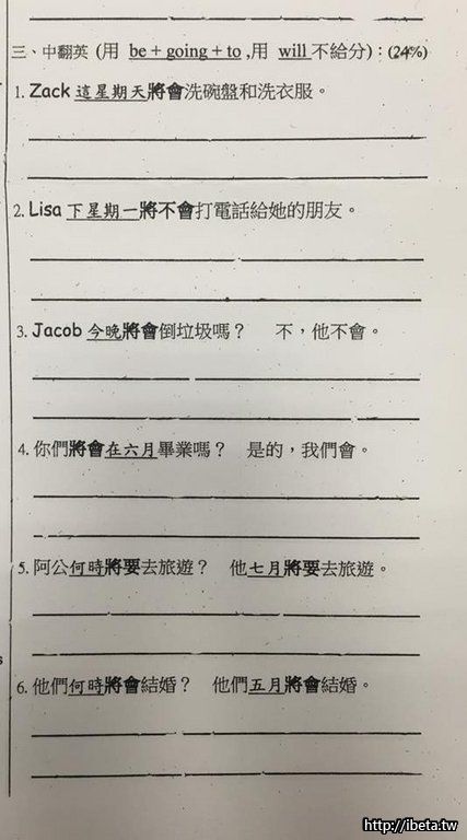 ▲詹琬蓁拿出小六生的英文考題。(圖/翻攝自詹琬蓁臉書,下同)