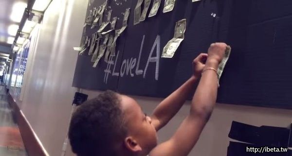 影片中,「The Toolbox」行動團隊成員將看板扛進洛杉磯聯合車站(Union Station),組裝完成之後,上頭滿滿的真鈔吸引不少民眾圍觀、拍照,大部分的人都選擇掏出鈔票將之釘到牆上,除了有小朋友拿著父母給的鈔票自己親手釘上看板,還有人大方捐出20美金(約617元台幣)。