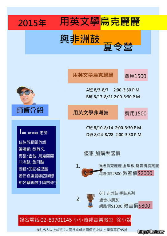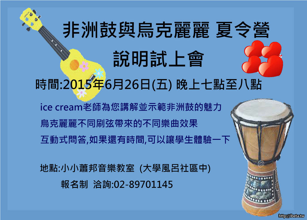 八月份的烏克麗麗或非洲鼓夏令營 說明會