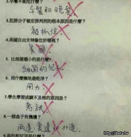 雖然這考卷引人發噱