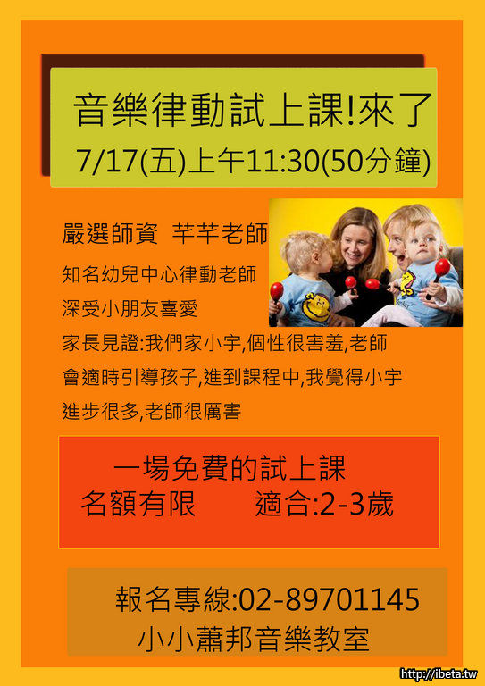 <免費體驗>7/17 適合 2-3歲音樂律動