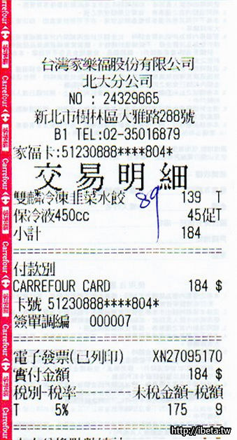 多年前在別間家樂福第一次遇到也是這種情形,當時不察,回家才發現,想到還要再開車去退很麻煩,就算了。從此以後,購物必定核對發票,OK才離開。