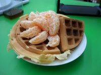 除了嚇人的橘子...原味鬆餅感覺還不賴