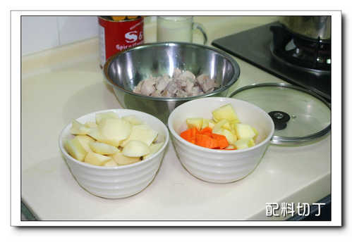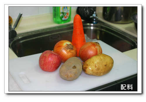 2.馬鈴薯,蘋果,洋蔥,紅蘿蔔...隨意....全部都要切丁