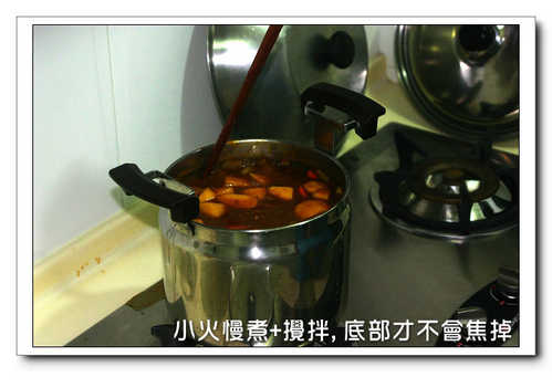 3.全部放進去,小火煮滾...一定要攪拌,底部才不會焦...