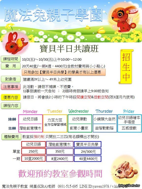 魔法兔親子教室 線上報名表