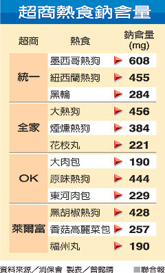 消保會公佈 超商鈉含量過高熱食 / 方柏丰