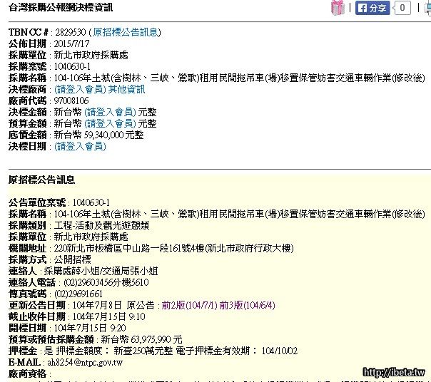 剛剛騎車回北大的路上,注意到在復興路左轉學成路口,有新設一面欣維盛民間拖吊保管場路標指示牌,回家上網查詢新北市府招標資料,七月份確有此標案,責任轄區涵蓋三鶯土樹等區域,預見民間拖吊力道應遠優於公營被動消極之不作為,該公司原承攬土城拖吊業務多年,拖吊實績名列全新北前三名........(拖太兇上網抱怨文一堆)