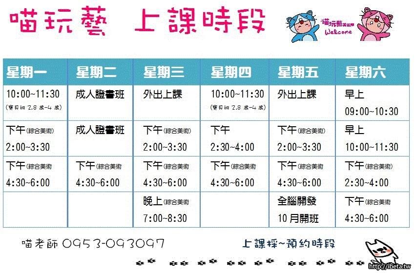 時間:9/3(四)起,每週一,四早上10:00~11:30