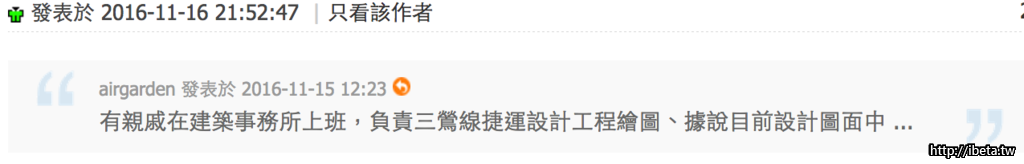 有親戚在建築事務所上班,負責三鶯線捷運設計工程繪圖、據說目前設計圖面中 ...