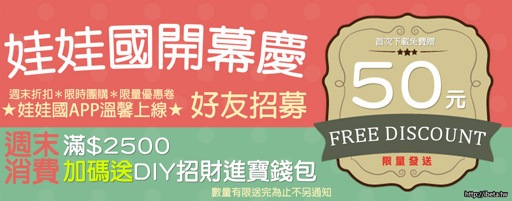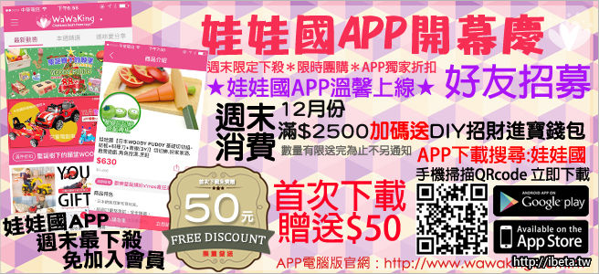 娃娃國擁有「天天新品、嚴選品牌、優惠折扣」,並且手機獨享新品資訊。